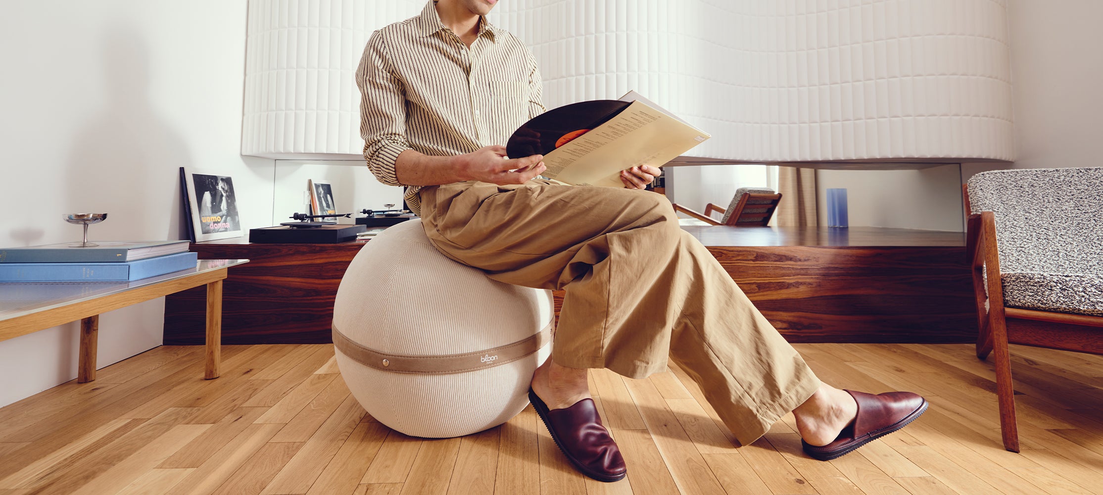 Les ballons Bloon sont très confortables pour travailler devant son ordinateur, on a une bonne posture pour ne pas avoir mal au dos. Dans le salon ça ne prend pas de place et les tissus sont de très bonne qualité et esthétique.