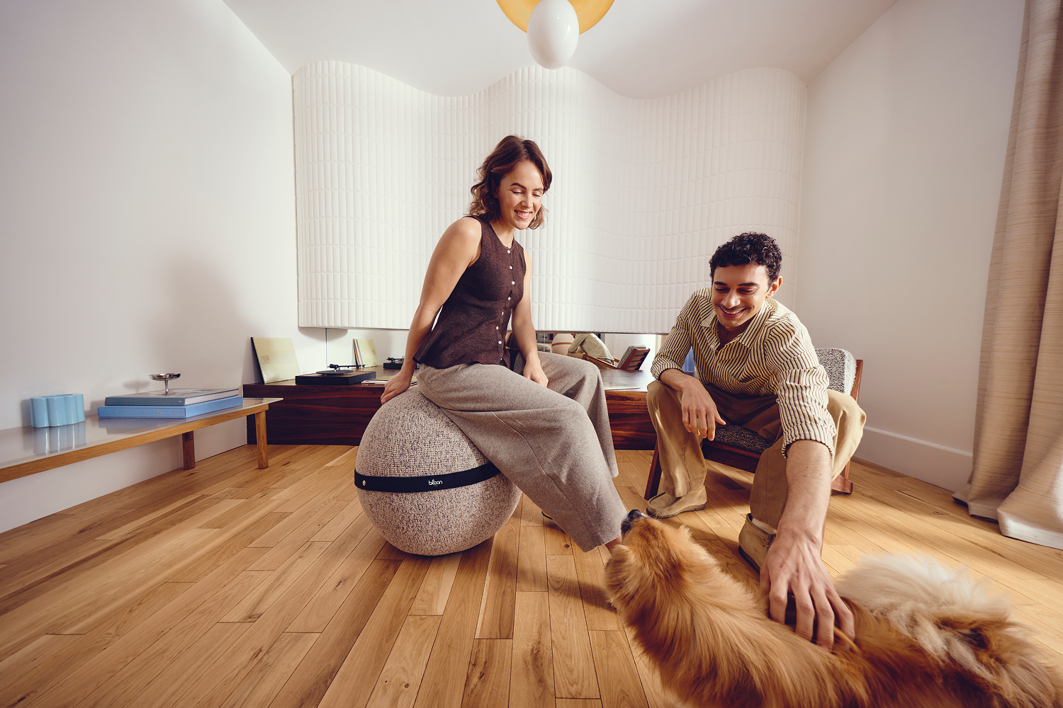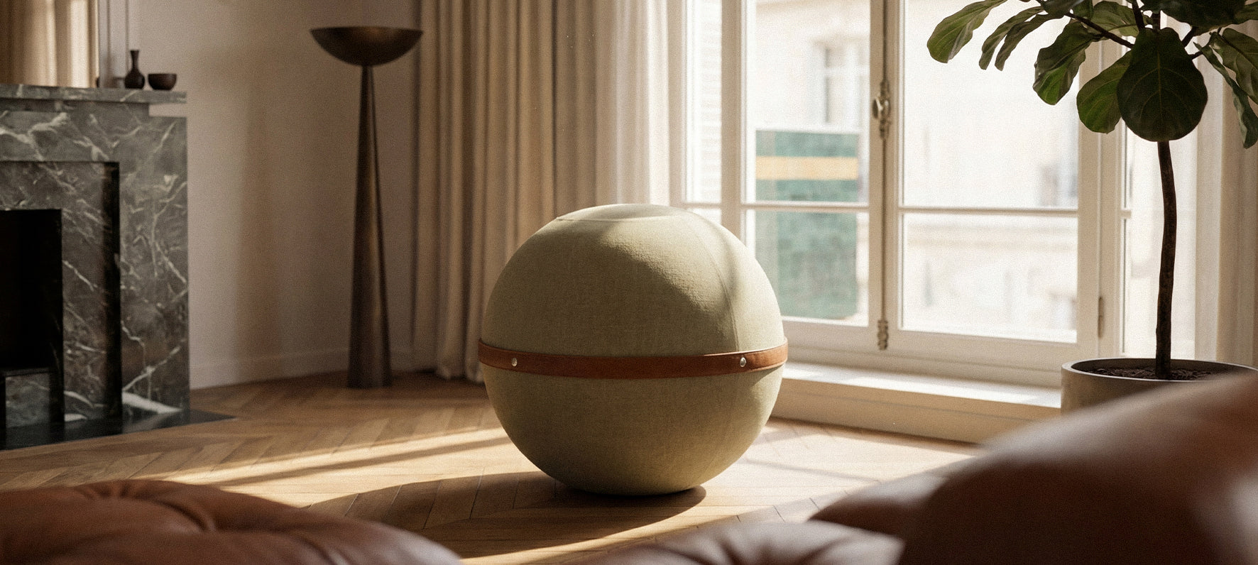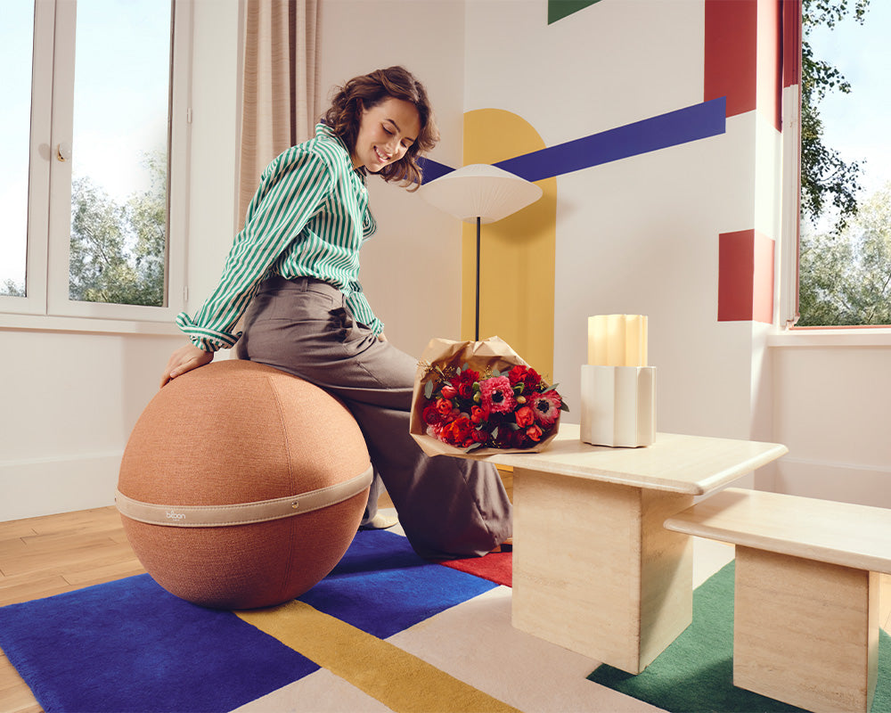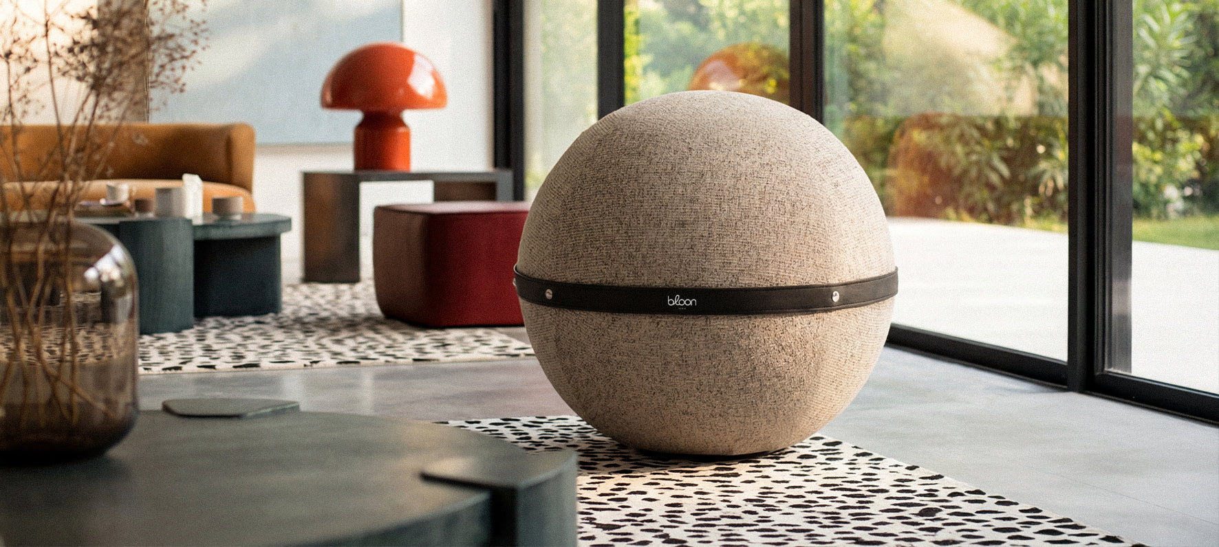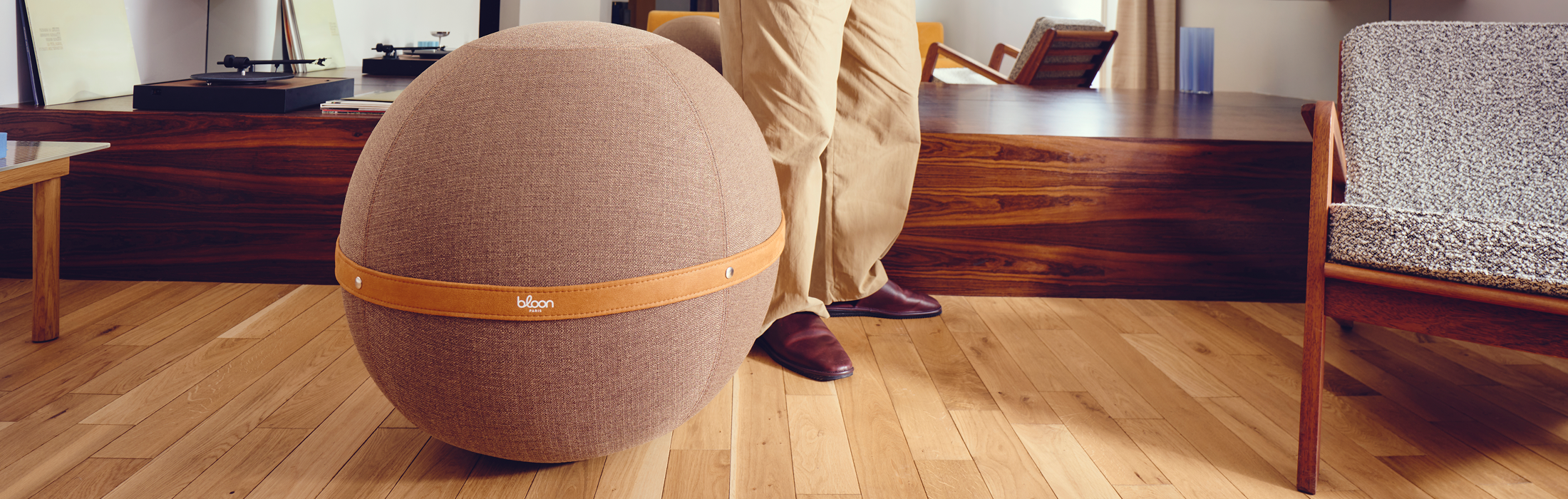 Our balloon seat, in sheepskin effect fabric.